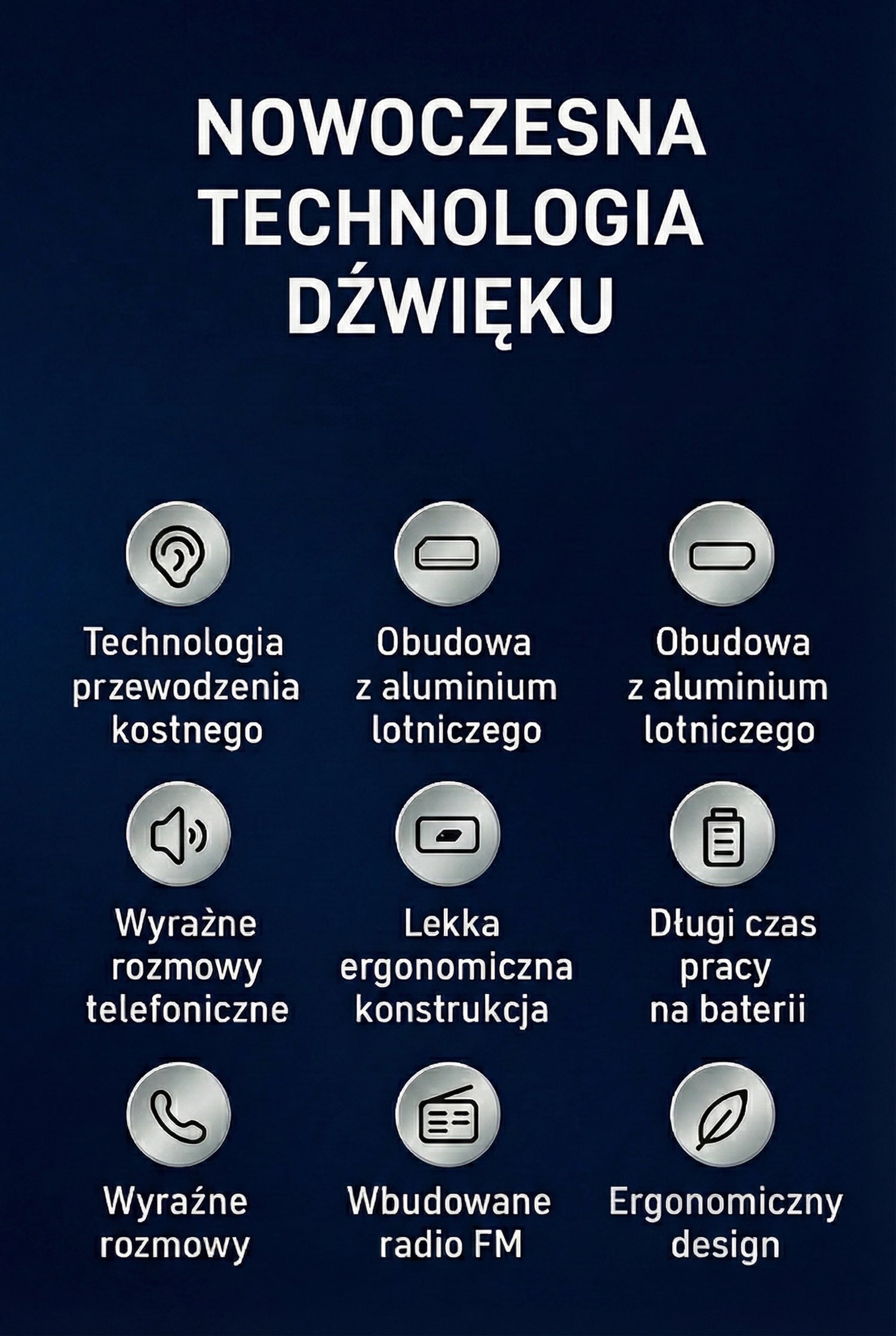 Zamknięty w stylowej, czarnej obudowie z aluminium lotniczego, jest nie tylko trwały, ale i niezwykle elegancki. Mimo lekkiej i ergonomicznej konstrukcji, oferuje długi czas pracy na baterii, wbudowane radio FM oraz funkcję wyraźnych rozmów telefonicznych. Idealny towarzysz w domu i w podróży.